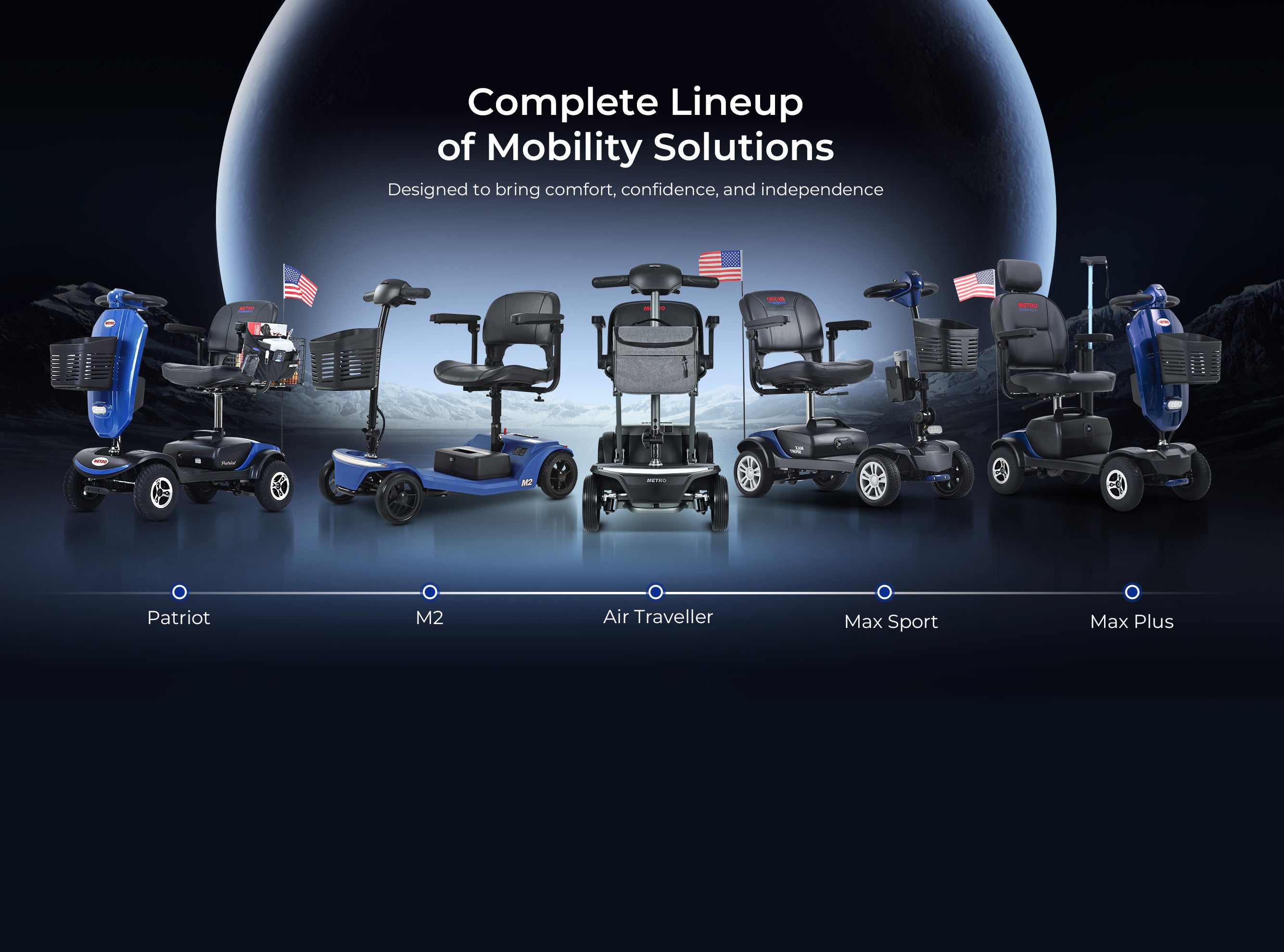 Metro Mobility is a US-based company specializing in the design and development of advanced personal mobility vehicles. Headquartered in New York, we create high-quality mobility scooters, electric scooters, and electric wheelchairs for adults and seniors—delivering safety, comfort, and reliable independence for everyday living, whether at home, outdoors, or on the go.