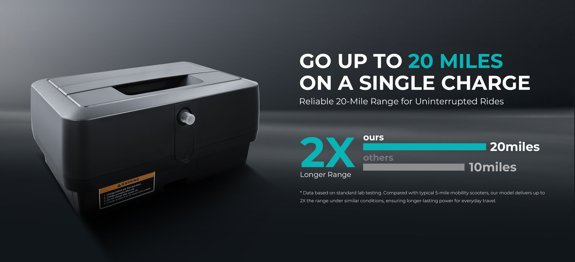 Depending on the selected battery (12Ah or 22.5Ah) and real-world factors—such as user weight, temperature, and terrain—the Metro Mobility M2 delivers an estimated 10–20 miles per charge.