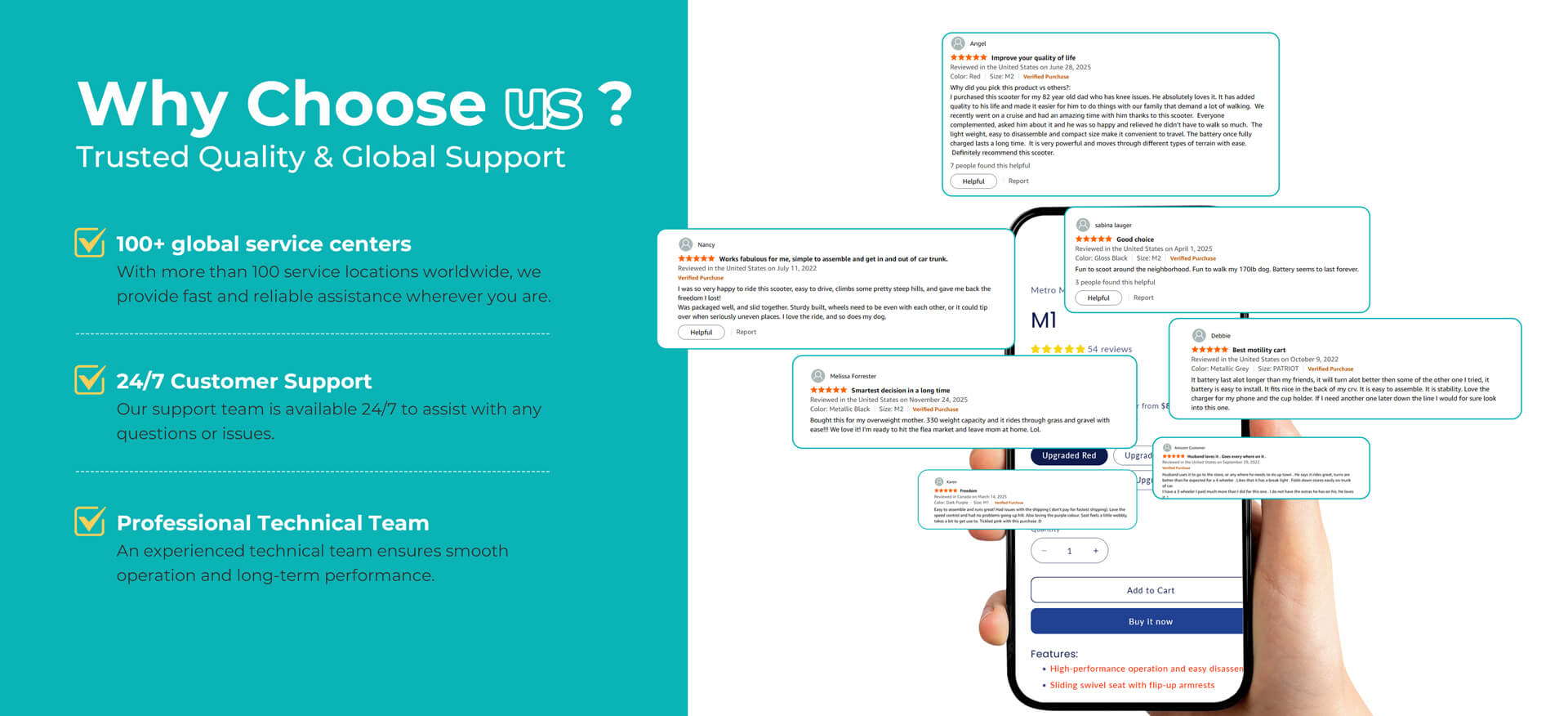 Follow these quick, simple steps to set up your M2 mobility scooter. Just unfold, attach key components, and secure the battery—no special tools required. You’ll be ready to ride in minutes with our easy, user-friendly design.