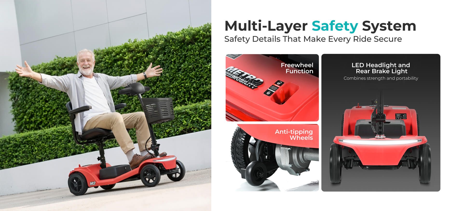The Metro Mobility M2 includes a suite of premium safety features, such as:
